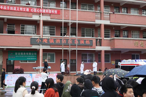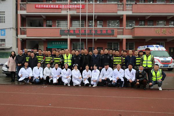 4月1日,小淹镇中心卫生院参加由小淹镇人民政府、小淹镇派出所等多家单位在小淹镇中学组织的消防应急救援演练。
