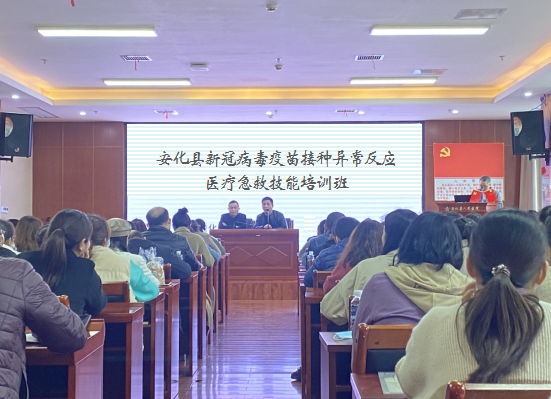 4月6日,县卫健系统新冠疫苗接种异常反应医疗急救技能培训在县人民医院二楼会议室举行。