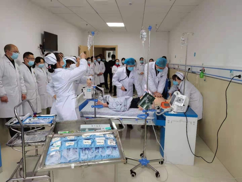4月9日,县第二人民医院与梅城镇卫生院联合组织开展新冠病毒疫苗接种异常反应应急处置演练。两院院领导及相关临床科室医护人员20余人参加并观摩演练。 此次演练模拟一位50岁男性接种疫苗后出现头晕、胸闷、呼吸困难等症状,接到巡视护士报告后,接种点医生立即查看患者,医护人员立刻开展抢救工作,开放静脉通道、吸氧、经查体考虑为重度过敏性休克症状,救治小组立即给予肌注肾上腺素、抗过敏、心肺复苏等综合处理,同时监测生命体征,反复评估患者情况,经抢救,患者症状缓解。同时,接种医生将相关情况上报分管领导、医务科、预保科,随后将患者转往县二人民医院进一步治疗。 |