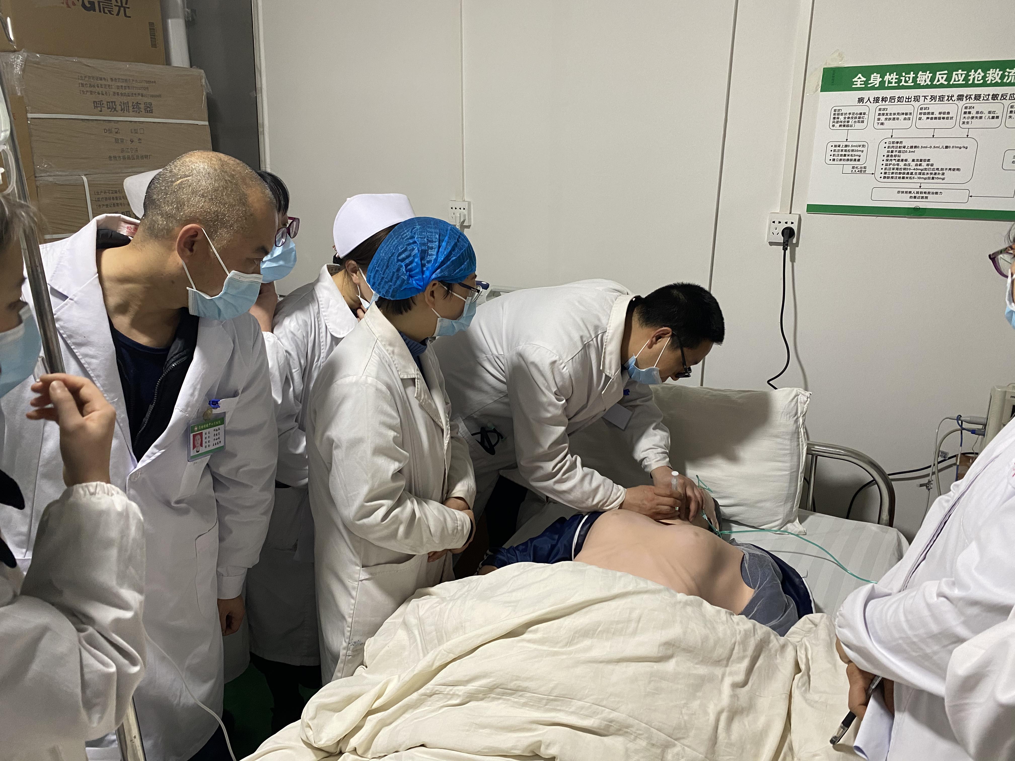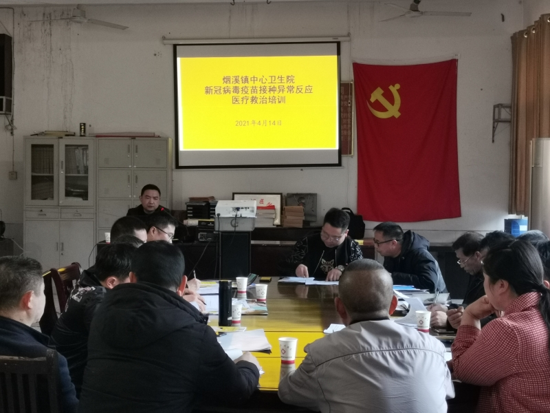 清塘铺镇中心卫生院 4月14日,清塘铺镇中心卫生院组织开展新冠疫苗接种异常反应应急演练,医院疫苗接种保障人员及医务人员参加观摩学习。 此次演练主要模拟受接种者在接种新冠疫苗后,出现过敏性休克,心跳呼吸暂停、心室颤动等异常情况下如何进行心肺复苏、抗过敏治疗、除颤等不良反应的应急处置救治。演练中全体医务人员还学习了气管插管以及环甲膜穿刺等方面的应急救治知识。演练结束后,就演练过程中的薄弱环节提出了改进措施。 仙溪镇中心卫生院 4月14日,仙溪镇中心卫生院开展新冠疫苗接种异常反应应急处置演练。医院临床科室医护人员、公卫办、接种室相关人员参加演练。 本次应急演练按照疫苗准备、预检、登记、接种、留观、异常反应处置、医疗救治等场景全流程模拟操作。现场模拟一位40多岁男士接种新冠疫苗后观察期间,突然出现头晕、胸闷、心慌不适。患者随即出现过敏性休克症状,在场人员马上报告医疗救治保障队医生,医生检查后,考虑过敏性休克,接种点医护人员立即开展紧急救治,通知救治小组成员,保持气道通畅予以氧气吸入、建立静脉通路、注射肾上腺素、抗过敏及心肺复苏等一系列处理后,该受种者病情趋向稳定,并及时上报信息及安全转运,整个过程有条不紊,井然有序。 烟溪镇中心卫生院 4月14日,烟溪镇中心卫生院在医院会议室举办新冠病毒疫苗接种异常反应医疗救治及应急处置培训班。医院相关医护人员、乡村医生和各村妇幼专干约60余人参加培训。 培训就新冠疫苗知识、接种组织实施等技术要点、接种异常反应监测处置、异常反应医疗救治等内容进行讲授。随即在医院接种点组织新冠疫苗接种异常反应应急救演练,模拟疫苗接种后发生不良反应,医护人员按流程对病人进行抢救。