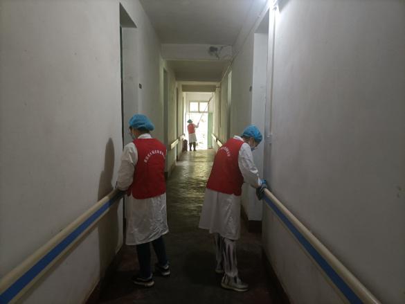 皮防所的巾帼女将们在相关负责人的带领下自带扫帚、抹布、撮箕到麻风病村开展环境卫生大扫除。活动现场,她们有的打扫地面、有的拖洗地板、有的清理墙壁、擦拭窗户,有的提水,每个人在清扫中找到了自己的劳动岗位,勤勤恳恳地奉献着自己一份的力量,一份热情,忙得不亦乐乎。