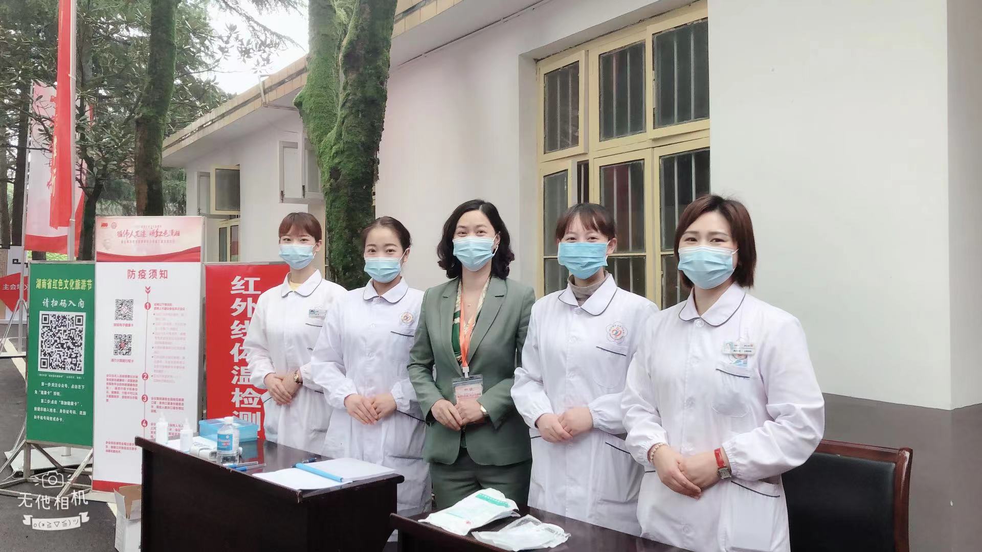 4月29日,2021湖南红色文化旅游节——重走青年毛泽东游学社会调查之路开幕式在梅城镇举行。县第二人民医院成立医疗保障疫情防控小组,为活动的顺利进行提供医疗保障。 现正处于常态化疫情防控期,在做好医疗保障的同时,县第二人民医院安排疫情防控监测人员在启动仪式点梅城镇文武庙古建筑群前坪,嘉宾入住酒店等地,为来宾提供口罩、监测体温,提醒来宾勤洗手,做好自身防护。