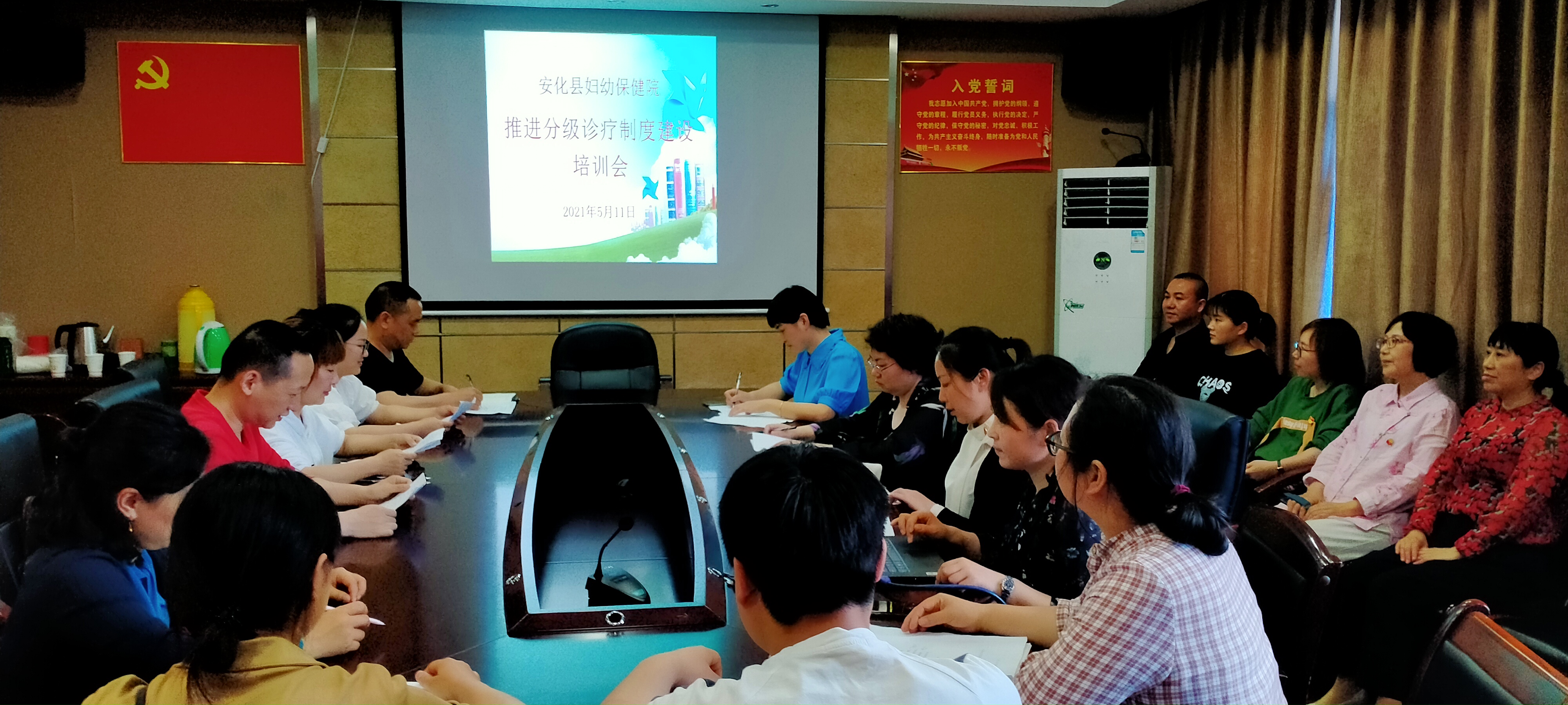 柘溪镇卫生院 5月8号,柘溪镇卫生院召开分级诊疗制度培训会,辖区医务人员和乡村医生认真学习分级诊疗政策,针对分级诊疗标准、双向转诊流程、医保报销政策等内容进行重点培训。 会上,组织学习《安化县推进分级诊疗制度建设工作实施方案》《安化县推进分级诊疗制度建设工作实施细则》和《推进分级诊疗制度建设宣传方案》等文件,培训《双向转诊流程》相关内容,解读分级诊疗医保报销政策。会议强调,要根据医院实际,选准医院特色专科,按照紧密型医共体要求,积极对接县级医院,在县级医院特色科室的传、帮、带、教中不断提升该院服务水平,更好发挥承担常见病、多发病诊疗服务功能,切实减轻人民群众“看病难,看病贵”问题。(邓思宇) 田庄乡卫生院 5月8日,田庄乡卫生院召开田庄乡推进分级诊疗制度建设培训会。该乡公卫办工作人员、村卫生室负责人共30人参加培训。 会上,卫生院主要负责人组织学习《安化县推进分级诊疗制度建设工作实施方案》《推进分级诊疗制度建设宣传方案》和《安化县推进分级诊疗实施细则》。会议提出,要加强宣传,提高人民群众对分级诊疗转诊流程和医保报销政策的了解和熟悉度,力争做到家喻户晓、人人皆知,真正实现“首诊在基层”这一目标,切实减轻群众“看病难,看病贵”问题。(腾芳艳) 东坪镇卫生院 5月9日,东坪镇卫生院在县人民医院行政楼5楼会议室召开推进分级诊疗制度建设工作培训会议。东坪镇医疗机构负责人、村医保专干、东坪镇卫生院干职工共226人参加。 会议对分级诊疗转诊流程和医保报销政策进行解读,并要求辖区内所有医疗机构和医务工作者加大宣传,严格按照分级诊疗实施细则开展转诊工作,会议还强调对不按要求转诊病人的单位和个人,一经查实,将按照《执业医师法》等相关法律法规的规定,严厉追究相关单位和个人责任,涉嫌违纪违法的移送相关部门查处。(廖陶然) 龙塘乡卫生院 5月9日,龙塘乡卫生院党支部开展5月份主题党日活动,组织党员下乡宣传分级诊疗制度政策,推进分级诊疗制度建设工作。