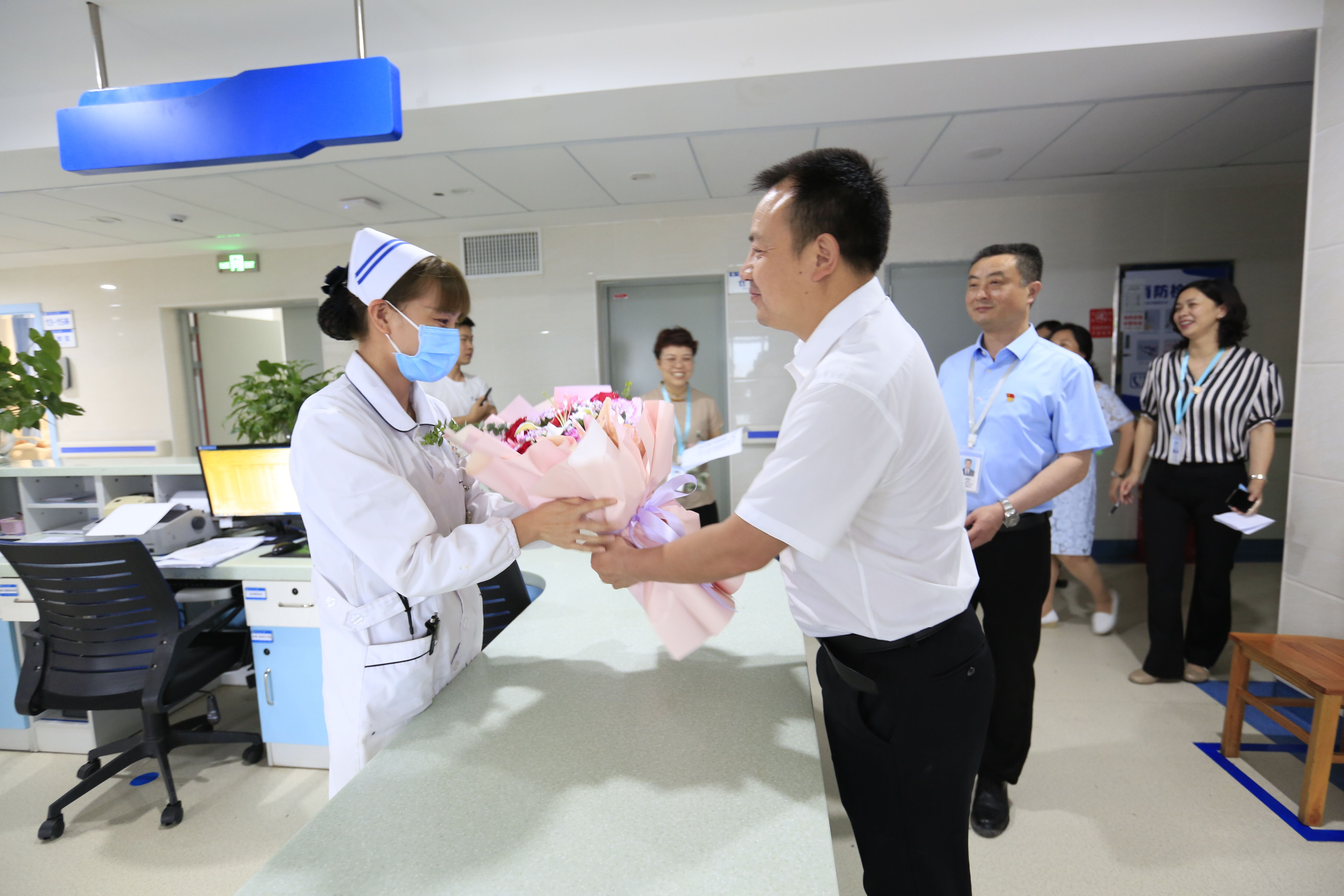 “节日快乐!……”5月12日,县第二人民医院书记、院长带领护理部成员给全院护士们送上鲜花和巧克力,表达节日的祝福。
