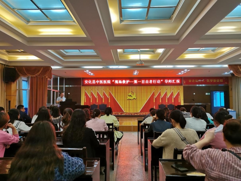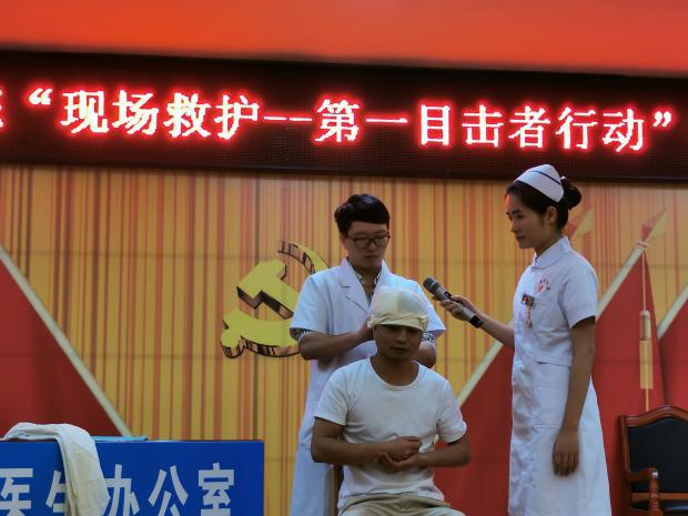 5月20日晚上,县中医医院在七楼会议室开展“现场救护--第一目击者行动”导师汇报活动,该院200余名医务人员参加。 活动中,10名第一目击者导师以生活中常见的心脏骤停、气道异物梗阻、创伤等为案例,通过情景模拟、现场救护演示的方式,生动形象地展示了心肺复苏技能及AED操作使用、海姆立克法、创伤止血包扎、骨折固定、搬运等技能。