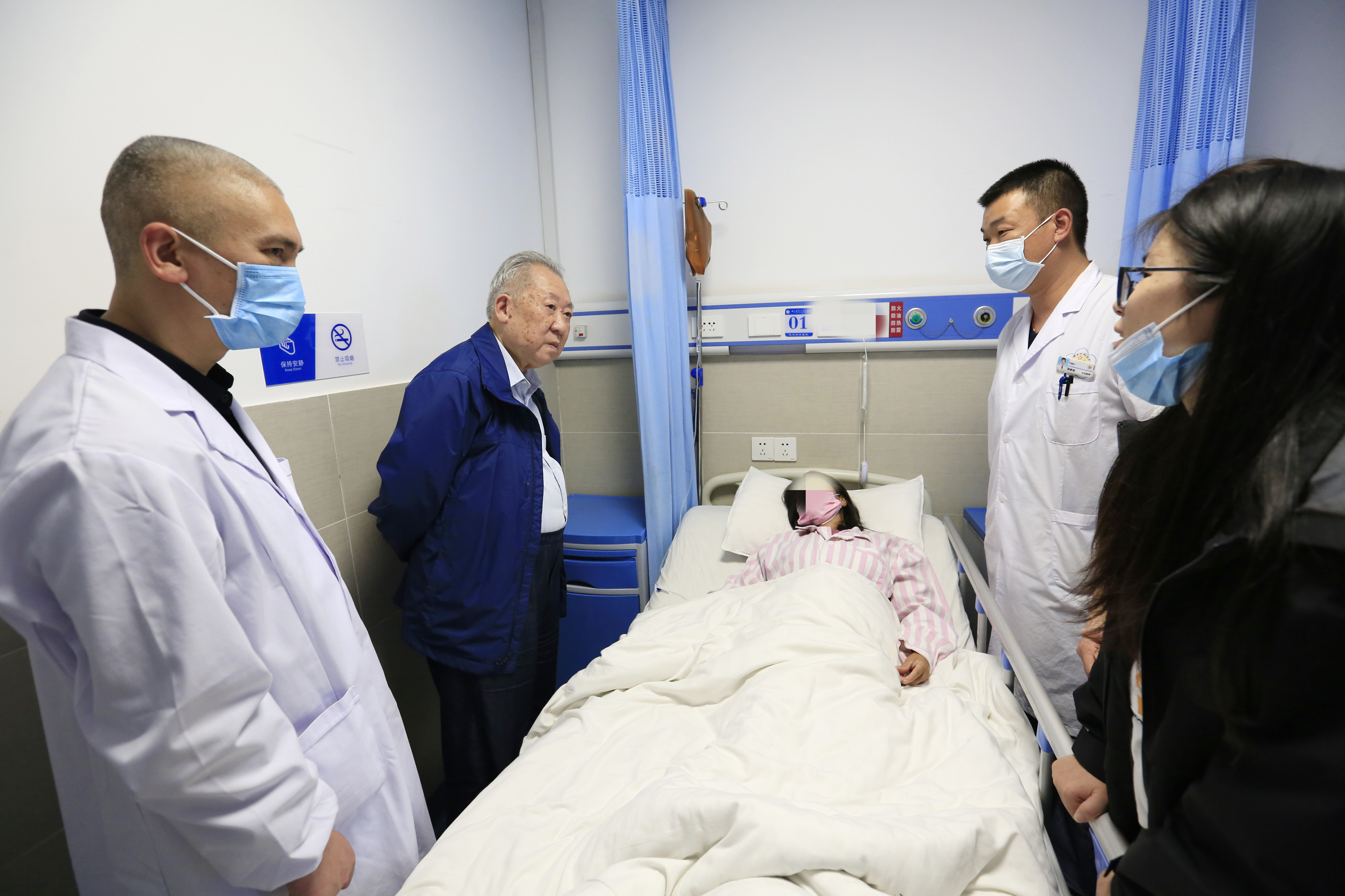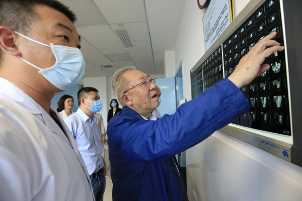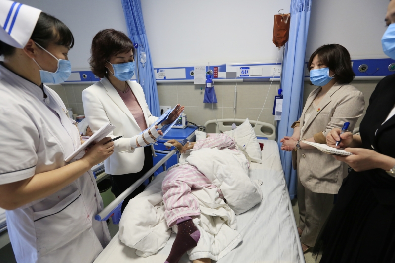 吴金术教授团队带领普外科医生、护士进行查房指导。对一复发性肝外胆管多发性结石、全肝内胆管多发性结石患者通过查看影像资料、现场查房进行病情分析,并为其改善护理质量及制定手术方案进行指导。