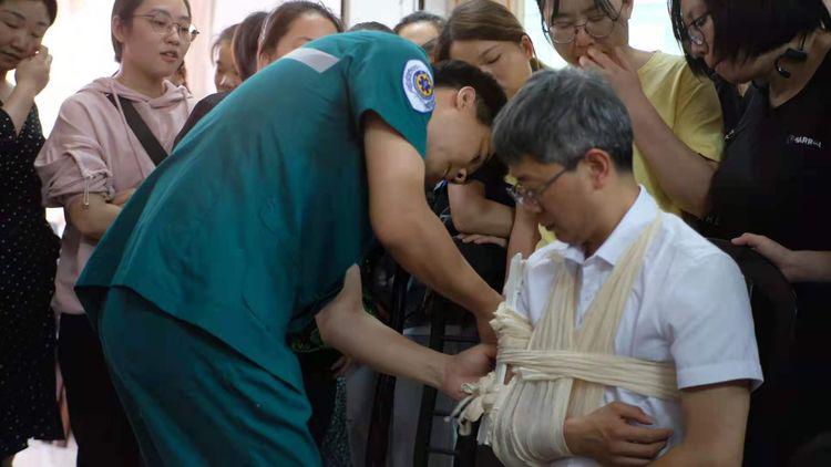 启动仪式上,介绍了现场救护第一目击者行动的培训目的、培训要求及现场救护“三个一”理念,即“第一时间”“第一现场”“第一目击者”及生存链的概念。学习了《安化县人民医院现场救护第一目击者行动实施方案》。会议提出,要建章立制,高水平规范,实现组织管理制度化;要注重质量,高标准落实,确保培训考核规范化;要各司其职,高质量组织,达到宣传推广工作程序化。 培训会上,培训导师分别就徒手心肺复苏步骤、体外自动除颤仪(AED)的使用及气道异物梗阻急救基本理论,创伤四项技术(止血、包扎、固定、搬运)等理论课程进行细致讲解,并针对心肺复苏、AED以及常见的止血包扎等技术进行了现场培训。在“理论+操作”学习后,通过现场考试考核的方式,60名志愿培训学员全部通过现场考核,获得“现场救护第一目击者资质”电子合格证书。