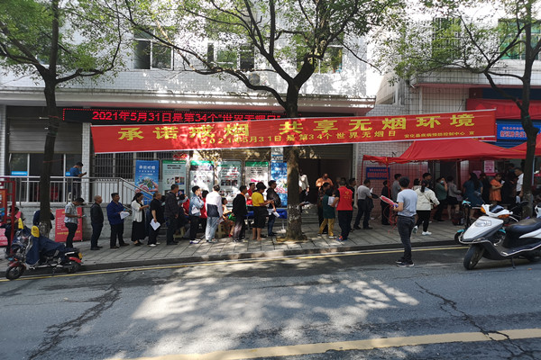 5月31日是第34个世界无烟日,县疾控中心在县城迎宾路开展“承诺戒烟 共享无烟环境”为主题的宣传活动。