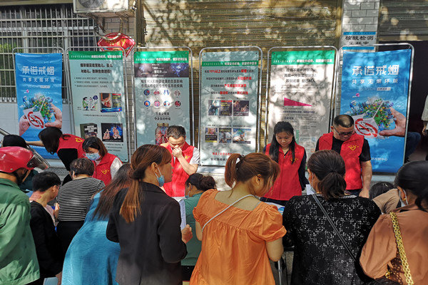 活动现场,工作人员通过悬挂主题横幅、摆放宣传展架、设立咨询台、免费测血压、发放宣传资料等形式,向过往群众宣传吸烟及二手烟暴露危害,深入普及电子烟危害知识,引导吸烟者主动戒烟、非吸烟者勇于拒绝二手烟,吸烟带来的危害。