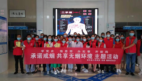 2021年5月31日是第34个世界无烟日,今年的主题为“承诺戒烟,共享无烟环境”。5月31日下午,县人民医院以“承诺戒烟 共享无烟环境”为主题开展世界无烟日宣传教育活动,让广大群众进一步了解烟草对人体的危害,增强戒烟意识,远离烟草,健康生活。 医院门诊大厅巨大显示屏上,持续播放控烟科普宣传片,主题生动鲜明,内容通俗易懂。大厅醒目位置设置有专业医生坐诊的戒烟咨询处,进一步帮“资深烟民”答疑解惑,提出指导性意见,营造良好的控烟氛围。