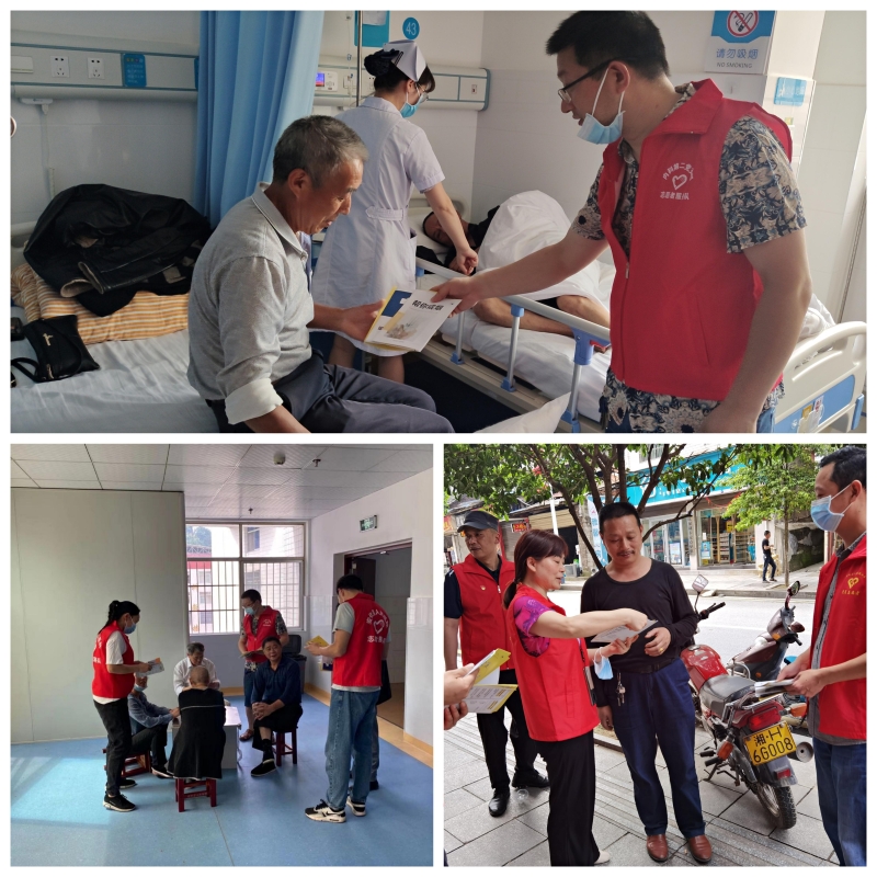 在学党史如火如荼之时,结合本次世界无烟日宣传活动,县人民医院身着红马甲的党员志愿者们用实际行动践行着“用心学党史,真心办实事”,全心全意为民服务的情怀。他们走进医院各个病房,走上街道进入社区,同有吸烟史的患者进行交流,劝导烟民患者早日戒烟;向广大群众宣讲吸烟的危害,呼吁大家摒弃吸烟陋习、拒绝二手烟危害,营造无烟社会环境;发放《吸烟的危害》《帮你戒烟》《和烟瘾做个了断》等宣传资料1000余份。同时告知市民,县人民医院已在门诊三楼设立了戒烟门诊,每周三下午准时开放,为烟民提供专业的戒烟指导,帮助科学戒烟。 |