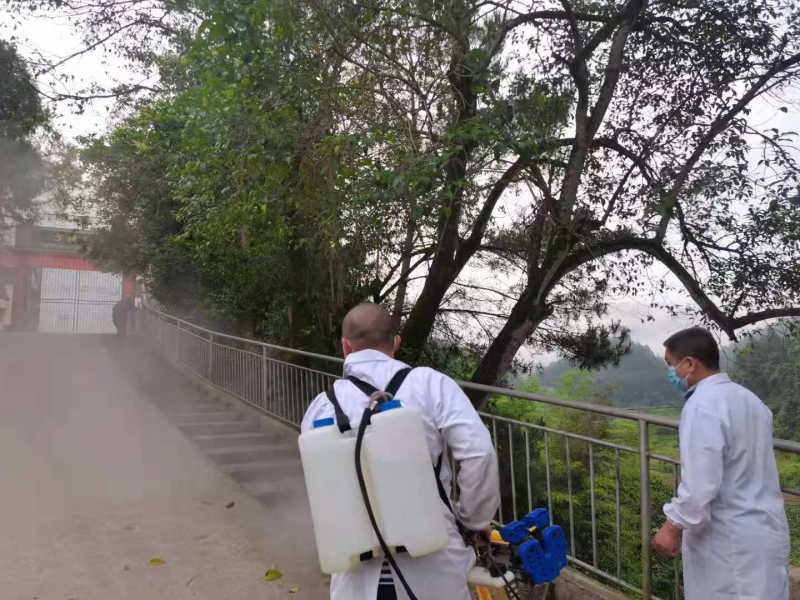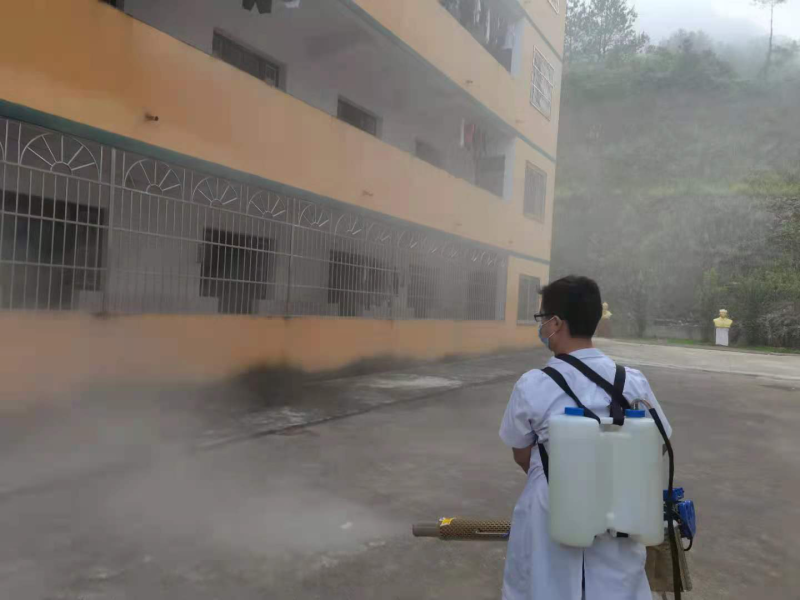 在支部书记的统一安排下,党员们不畏炎热,背着15公斤重的调制消毒药水,拿着消毒工具对学校的教室、办公楼、走道、室外以及厕所等重点场地进行全面消毒,为中考学子创造安全的考试环境。