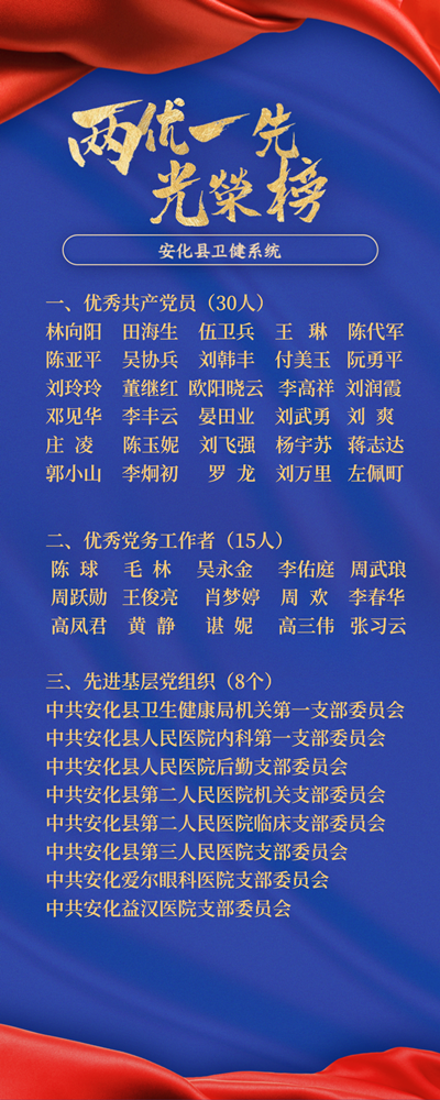 【点赞榜样】县卫健系统“两优一先”表彰名单