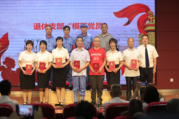院长陈强宣读表彰文件,对医院的党员标兵、退休模范党员、学习强国积极分子、光荣在党50周年老党员进行表彰。