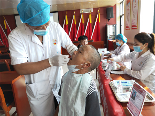 现场进行口腔检查 据悉,本次活动共有80余名老年人参与。