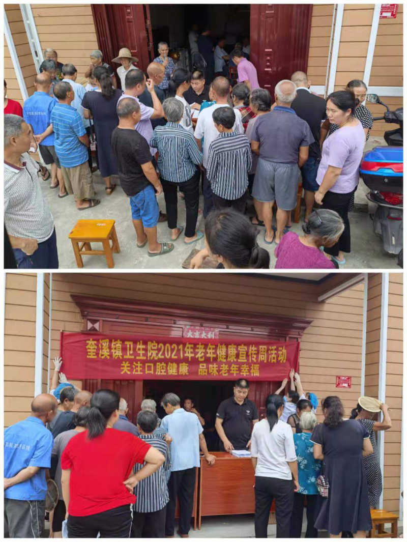 为贯彻落实积极应对人口老龄化国家战略,宣传普及老年健康政策和科学知识,提高老年人健康管理水平,7月12日至18日,安化县组织开展了2021年老年健康周宣传服务活动。 活动以“关注口腔健康,品味老年幸福”为主题,结合公共卫生服务工作,通过悬挂条幅、发放宣传资料、播放老年健康教育视频、入户访视、健康体检、义诊等方式积极宣传老年健康政策、普及老年健康知识。 县卫生健康局组织县妇幼保健院、雅尔康口腔医院到东坪镇中心敬老院对在院及周边的老年人进行老年口腔健康宣教和健康检查,并给老年人送去了油、米、牙刷、牙膏等生活物资;县中医院、小淹镇中心卫生院、滔溪卫生院、龙塘乡卫生院、大福镇中心卫生院、烟溪镇中心卫生院、现代医院等多家医疗卫生机构结合公共卫生服务、疫苗接种工作,在各自辖区内陆续开展了老年健康知识宣传、口腔健康检查、义诊、慰问等活动。 县卫健局、县妇幼保健院、雅尔康口腔医院老年健康周活动现场 奎溪镇卫生院老年健康周活动现场