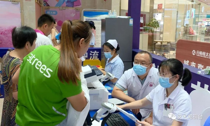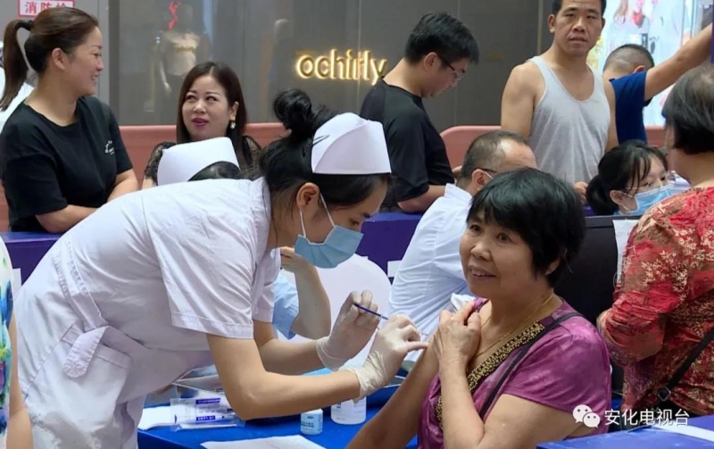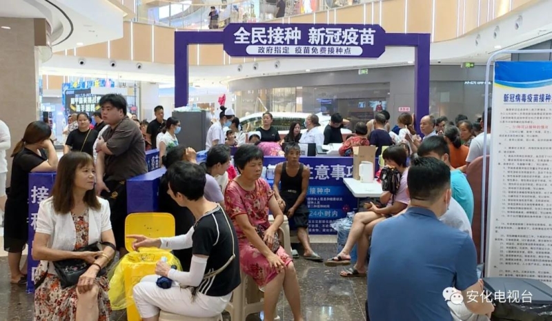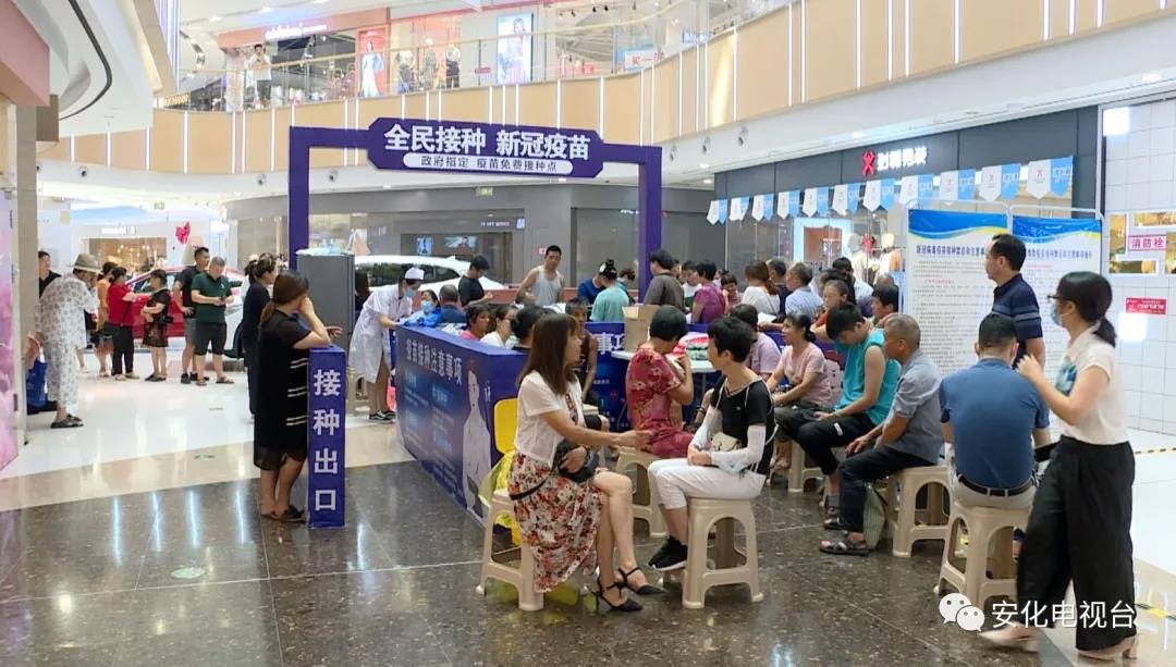 当前,安化正全力推进新冠疫苗接种工作,除医院、卫生院等固定接种门诊外,还根据居民实际需求,增设部分接种点,方便群众及时就近接种疫苗。 7月23日,在安化这家商场内的新冠疫苗接种点,前来接种疫苗的群众络绎不绝。接种群众在工作人员的指引下,有序排队等候接种,依次做好预检登记、签订知情同意书等流程。当天上午商场的接种点就已完成近两百剂次的疫苗接种。 我们将疫苗接种点设在人流密集的商场,是为了方便附近居民与流动群众进行疫苗接种,也向大众宣传了新冠疫苗接种的重要性。