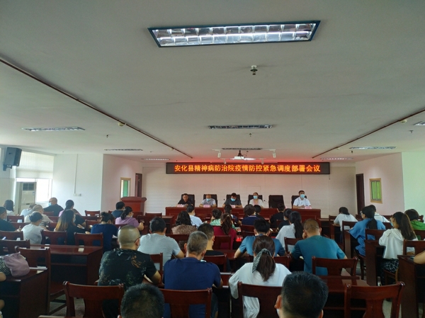 近期,国际新冠疫情形势仍然严峻,国内多个省市出现疫情反弹,我县卫健系统各单位快速行动,积极部署疫情防控工作,织密筑牢我县疫情防控网。 安化县精神病防治院 8月2日下午,县精神病防治院召开疫情防控紧急部署会议,该院在家班子成员、全体干职工参加会议。 该院分管副院长传达8月1日梅城镇疫情防控会议精神,详细解读《梅城镇当前新型冠状病毒感染的肺炎疫情防控工作方案》。该院负责人详细传达省、市、县以及县卫健系统疫情防控紧急会议精神,通报郑州第六人民医院院内感染事件,传达当日上午县委书记刘勇会督查该院疫情防控工作时的重要指示,并对该院当前疫情防控工作作具体部署。