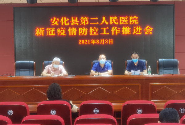 会上,该院院长传达上级新冠肺炎疫情防控工作会议精神,分析当前疫情防控所面临的严峻形势。并对当前形势下的防疫抗疫工作做进一步的安排部署,要求全院干职工在思想上进一步提高政治站位,坚决杜绝麻痹思想、厌战情绪、侥幸心理、松懈心态,切实做好医务人员个人防护、重点人群应检尽检和院感防控工作;在行动上严格落实预检分诊,发热哨点制度,做好环境消杀、物表消毒;预检分诊及铁门入院人员必须佩戴口罩入院、查三码、问病史、测体温;对发热哨点患者,新住院患者及陪护人员和医院工作人员等重点人员实行核酸检测全覆盖;全院职工要共同努力、全力以赴地做好疫情防控工作和疫苗接种工作。 县第二人民医院 8月3日,县第二人民医院召开新冠疫情防控工作推进会,全院中层干部参加会议。 会上,该院院长传达国家、省、市、县各级疫情防控紧急会议的精神,通报目前疫情动态,并根据上级防控要求,干职工取消8月份假期,加大宣传力度,落实疫苗接种工作,强化医护人员的业务知识培训,开展应急演练。通过无锡、郑州院内感染案例,警示大家时刻提高警惕,做好自身防护。副院长宣读《安化县第二人民医院新冠肺炎疫情防控工作方案》及《第十八次院长办公会会议纪要》,对院内疫情防控工作进行详细安排,明确职责,工作落实到人,加强预检分诊人员力量,行政后勤工作人员配合安保人员进行预检分诊值守。