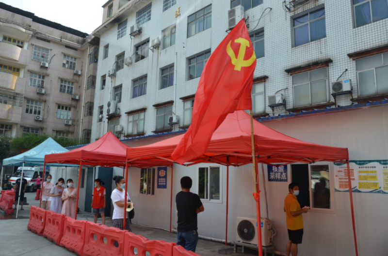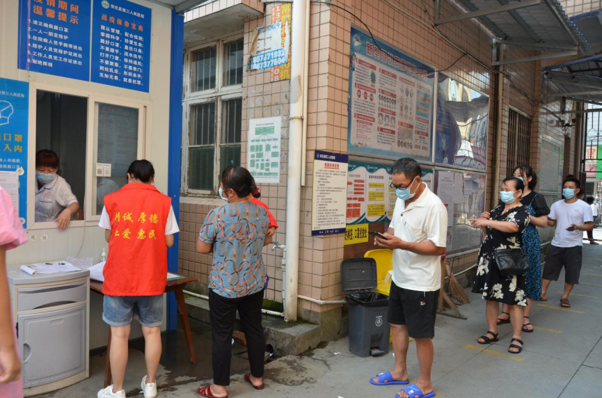 8月7日,骄阳似火,县第三人民医院党员志愿者的身影忙碌在预检分诊台、核酸采样点、疫苗接种点、住院病房、整体搬迁项目工地等防疫一线。 面对当前疫情的严峻态势,县第三人民医院党支部迅速部署,积极发动支部党员参加疫情防控志愿者服务。在这场与“德尔塔病毒”的较量中,县第三人民医院党员踊跃报名,穿上红马甲,头顶烈日,助力疫情防控,让党旗在抗疫一线高高飘扬。 在预检分诊台,党员志愿者配合值班医务人员对每一位来访者都进行了仔细询问和登记:“请您间隔一米排队检查”“请您测一下体温”“您近期是否到过张家界、长沙、益阳等地”“请您出示下健康码和行程码和新冠疫苗接种数据”“请您出示一下7日内的核酸检测结果”!在高温酷暑下,无数次重复着同样的话语,不遗漏任何一条信息。 在核酸采样登记处,党员志愿者为有序排队的采样人员进行详细登记,并引导他们按照流程顺利完成核酸检测采样;考虑到天气原因,党员志愿者紧急搭建了四顶帐篷,还设置了便民饮水点。 在疫苗接种点,党员志愿者全身心投入到服务当中。面对络绎不绝的接种群众,大家分工明确、有条不紊地开展工作,入口管控、人群疏导、信息登记、问题解答……大大缓解了排队高峰期现场工作人员的压力,让不少群众都觉得很贴心。 不仅如此,党员志愿者还为住院病人发放疫情防控知识手册,一边讲解防疫知识,一边教他们如何做好卫生防护。党员志愿者还到医院整体搬迁项目现场,为他们发放疫情防控知识手册,并向他们讲解示范如何佩戴口罩和“七步洗手法”。 |