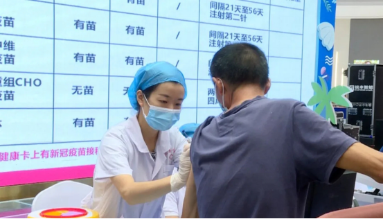 图为宋晴芳正在给群众注射疫苗 从7月23日开始,共接种7000余人次,平均每天接种400余人,一天下来已经腰酸腿麻,但她从不叫苦喊累。 她的爱人吉成辉是县城管执法局环卫所的职工,也是抗疫的一员,每天顶着炎炎烈日,在城区各机关、学校、医院、广场等重点场所投放口罩收集桶,为一线环卫工人发放防疫物资,宣传防疫知识。