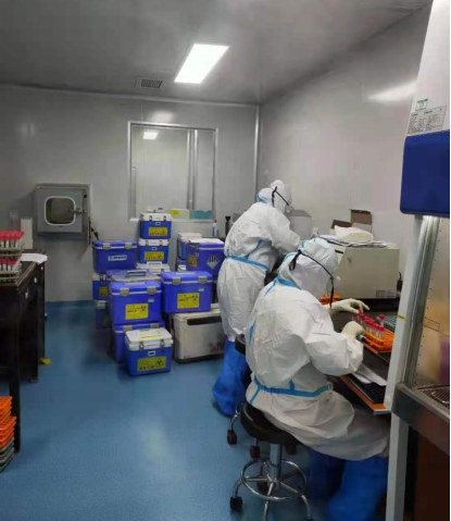 图左三为吉成辉在为环卫工人发放口罩 吉成辉十分理解妻子的不易,下班后他会赶到接种点陪着妻子一起把事情做完,然后回家。到家已是深夜,孩子已经进入梦乡,手里却还抓着妈妈的照片。看到这一幕宋晴芳眼角已经湿润,因为这段时间陪伴孩子的时间太少太少。 姚攀军+林水军 他冲锋在前,她守护在后。 “8月9日,1394份核酸检测标本结果全部为阴性。”县中医医院检验科主任姚攀军收到这条短信已是凌晨两点。 自抗疫阻击战打响以来,检测标本工作量与日俱增,从院内的核酸标本检测到相关乡镇卫生院、相关单位的核酸标本检测,每天大概2000余份标本。一批批标本,为了尽快出结果,姚攀军带领科室人员加班加点进行检测。信息的核对,标本的灭活,加样释放核酸,仪器检测,到最后发布报告。姚攀军和他的同事们穿着密闭的防护服一工作就是连续几个小时,脸上被压出深深的印记,手指被汗水浸得发白,甚至凌晨三四点还在忙碌。