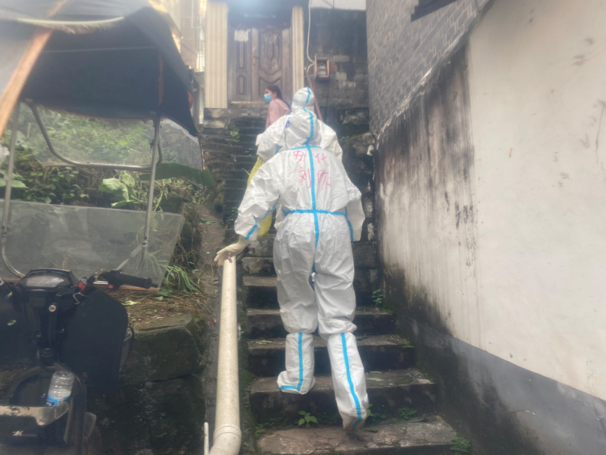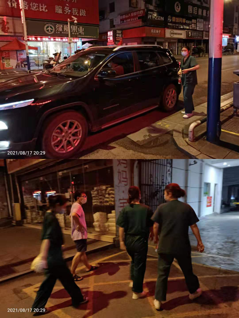 原本就安静的桑植县街道,今天显得格外寂静。唯独一盏盏路灯屹立在公路两旁,时而出现巡逻的警车、排队有序的志愿者们,给人带来一丝温暖。唯独我们在焦急的等待。 领队在接到任务的第一时间(8月17日 14:30),立即组织并安排18名人员前往不同的7个村去核酸采样,直到天黑还有队员没回来。工作群里不时发来队友工作时的照片: 有楼道里、大街上孤单的背影 有胡同里最美的弯腰 有疲惫后的倚靠
