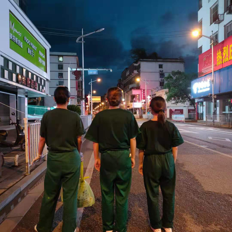 在宾馆待命学习的我们也是按捺不住,恨不得自己立马能到队员身边替换她们。因为我们知道,穿上防护服,她们就没有喝一滴水,也没有一分钟休息,加上今天气温30度。脱下防护服的那一刻,有时会感觉整个人跟虚脱了一样。 组长们不约而同到达宾馆门口,期盼的眼神不停看着她们出发时的方向,足足站了一个多小时。终于在20:29等来了一辆朝我们打着转向灯的车。 “是她们,一定是她们”我们像听到了口令一样欢呼着。推开车门的那一刻,我们大家暖心笑一笑,一切尽在不言中。 原来,灯光下的等待是如此之美。 2021年8月17日 |