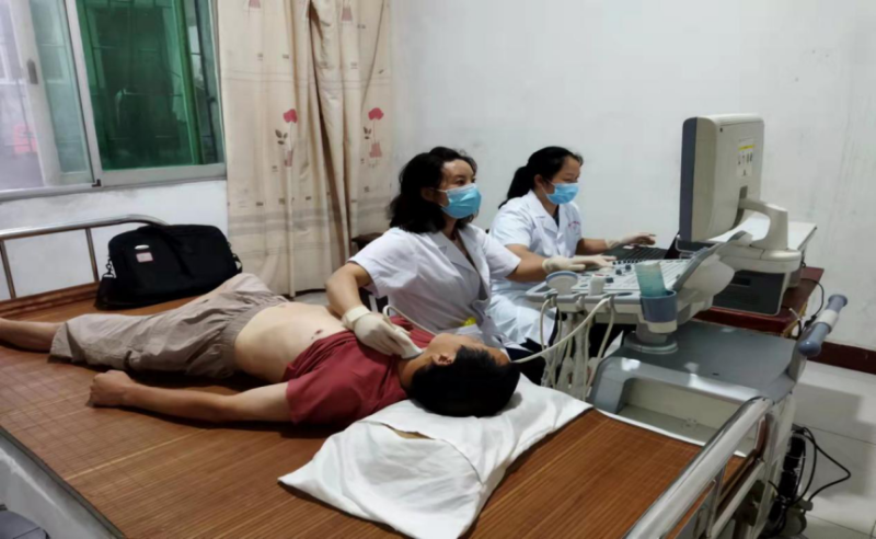 9月8日,东坪镇卫生院组织一支10人医疗队,在玉溪村为当地心血管病高危人群开展本年度国家心血管病高危人群长期随访及免费体检。 图为医生正在为心血管高危人群做颈动脉超声检查 据悉,该院自2019年启动国家心血管病筛查项目以来,每年为玉溪、中砥、杨林等10个村的500名心血管病高危人群进行随访与免费体检。免费体检的项目包括,测量身高、体重、腰围、血压、血糖、血脂、肝功能、肾功能、载脂蛋白、糖化血红蛋白、心电图、颈动脉彩超及用药指导和生活方式干预等。为做好今年随访工作,该院高度重视,提前部署与协调,在做好当前新冠疫情常态防控前提下,分块分区进行长期随访与免费体检,做到随访与防控工作两手抓。今年随访工作自8月30日启动以来,已为300名心血管病高危人群进行长期随访和免费体检。 |