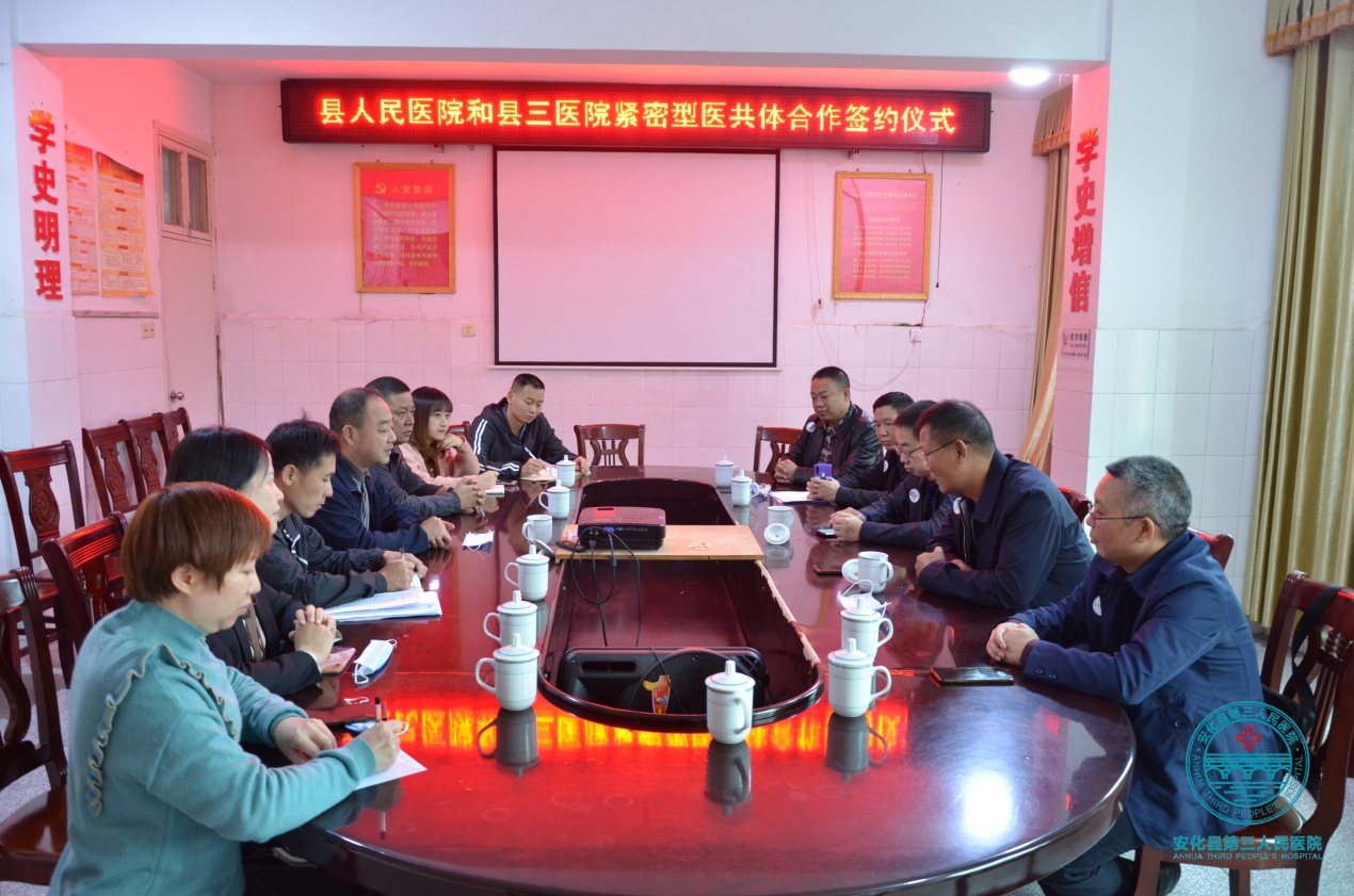 10月11日,县第三人民医院与县人民医院就共同建设紧密型医共体举行签约仪式。 签约仪式上,县人民医院负责人介绍该院概况以及学科、人才、技术和管理优势。他表示,县人民医院将充分发挥县域三甲医院的优势,通过医共体建设,建立良好的分级诊疗和上下联动转诊机制,切实让安化老百姓在家门口享受到更加优质、便捷的医疗健康服务。随后,县人民医院负责人与县第三人民医院负责人签订医共体合作协议,两院医共体合作正式启动。 县第三人民医院负责人表示,与县人民医院共同建设紧密型医共体是医院发展的新起点、新机遇,医院将以此为契机,紧紧抓住机会,主动加强联系,认真学习县人民医院的先进管理经验、优质医疗服务,促进医院医疗服务能力全面提高。 |
