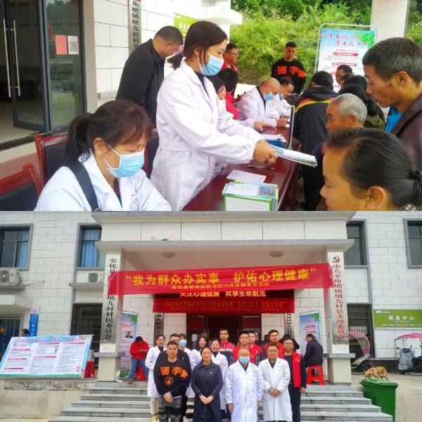 此外,该院另组织十余名党员医务人员,结合10月“我为群众办实事 护佑心理健康”主题党日活动,联合羊角塘镇中心卫生院在羊角塘镇塘九村开展“世界精神卫生日”宣传义诊活动。活动现场,塘九村及其周边村庄患有精神障碍疾病、抑郁症疾病的村民约50余人到场咨询、就诊,该院医务人员为村民宣传精神障碍疾病预防知识、测量血压,给有需要的患病村民进行问诊、开处方、免费发放药品。据统计,现场共义诊患者20余人,免费发放药品价值3000余元。