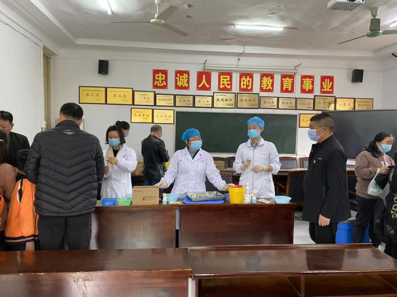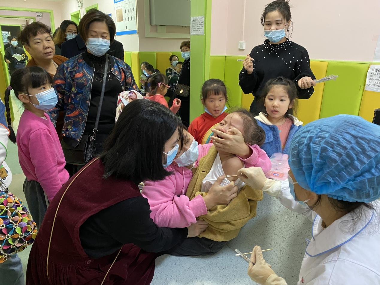 接种期间,成立了两个工作组,一组在东坪镇公卫办负责城区内幼儿园学生的接种,一组进入学校为一年级以上学生接种,每组配备专业儿科医师、公卫医师和护士及后勤保障人员,确保疫苗接种工作安全有序进行。