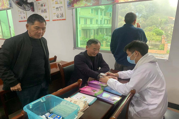 讲座现场,医务人员向村民发放中医保健宣传资料,并为他们免费测量血压、血糖,随后为村民讲解养生保健知识,内容包括养生十六字方针和养生十六宜,鼓励大家合理膳食、适量运动、戒烟限酒。
