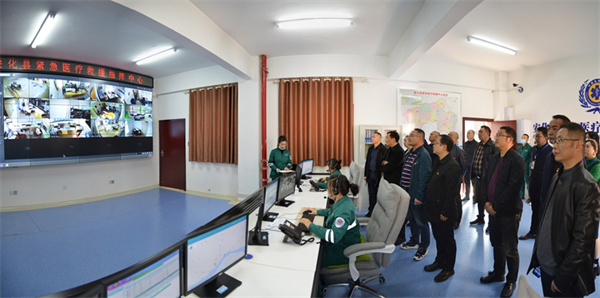 图为120急救指挥中心实景 莫超强调:各医疗卫生单位要服从指挥中心统一调度,加强院前急救能力建设,加强协作,形成紧急医疗调度工作合力,全面提升全县紧急医疗救援指挥调度能力,实现“规范、快速、高效、安全”目标。要以此次指挥中心运行为契机,站在新起点、踏上新征程,展现新作为。努力把我们的县紧急医疗救援指挥中心打造成设施精良、服务精致、群众满意的优秀医疗服务平台。