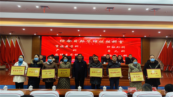 会上,医院党委副书记、院长作总结报告,全面回顾2021年工作成绩,部署2022年工作安排。医院党委委员、副院长宣读表彰通报,颁发了综合目标管理奖、6S精益管理标杆科室奖、医疗安全奖、疫情防控突出贡献奖等。医院党委书记就春节期间疫情防控、党风廉政、安全生产、药品管理、医疗安全、出行安全、物资保障、应急值守等工作进行了部署强调。