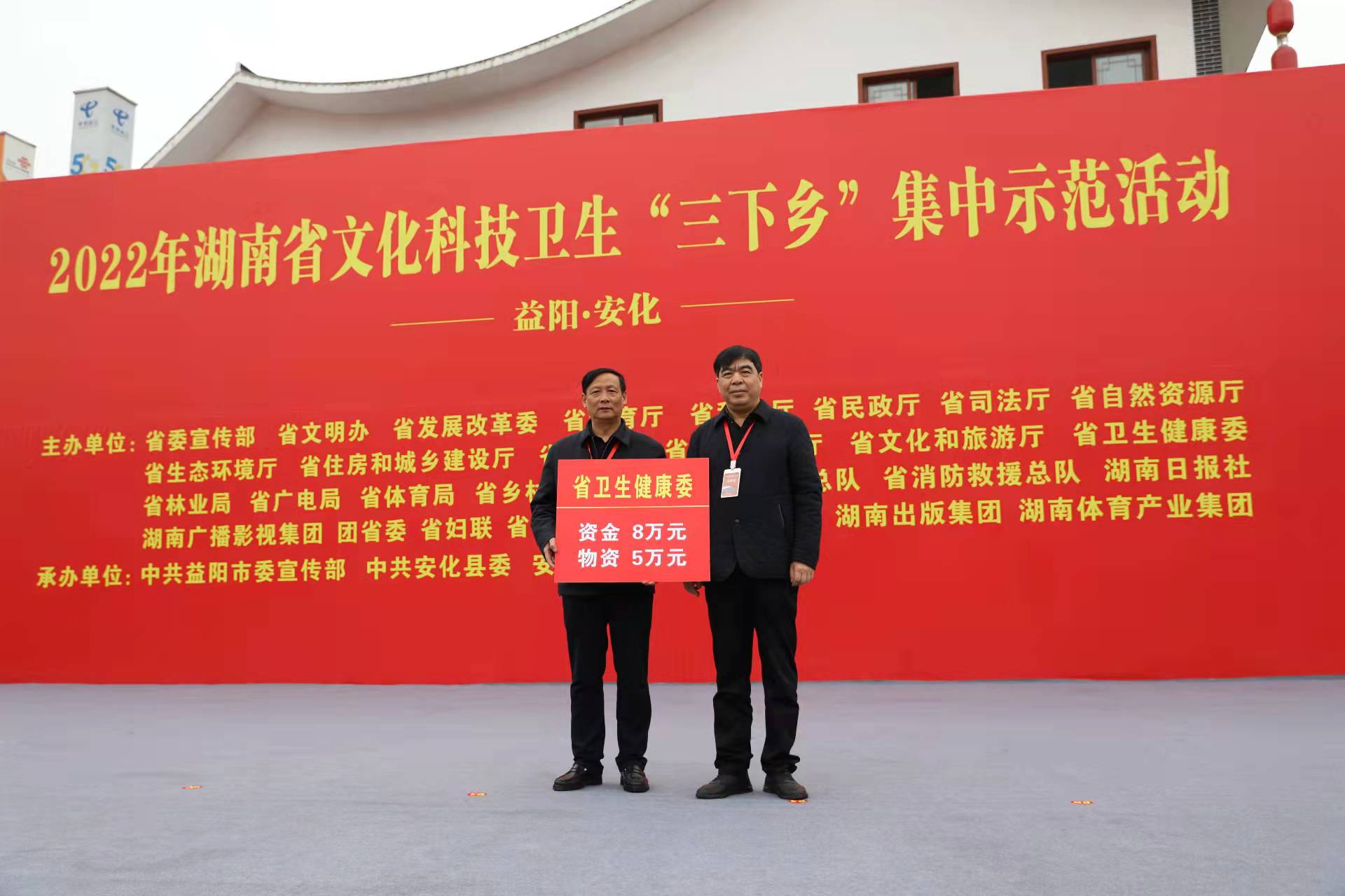 3月4日上午,2022年湖南省文化科技卫生“三下乡”集中示范活动在我县龙塘镇茶花乡花海广场举行。本次活动由省委宣传部、省教育厅、省科技厅、省卫健委等28家单位送服务到基层。 省卫生健康委作为活动主办单位之一,精心组织、积极参与,省卫生健康委一级巡视员彭振国出席活动现场,并代表省卫健委向安化县卫健局和当地群众捐赠了8万元的帮困资金和价值5万元的药品药具、健康科普宣传资料。 在卫生健康展台前,由省、市、县卫生健康部门和医疗机构组成的卫生健康服务人员,免费为群众提供药品药具和医疗卫生、健康科普等咨询服务,发放宣传资料2000余册,针对当地群众常见多发病种,医务人员为百余名群众开展健康体检和义务诊疗,免费发放价值1万余元的常规药品,受到当地群众一致称赞。 |