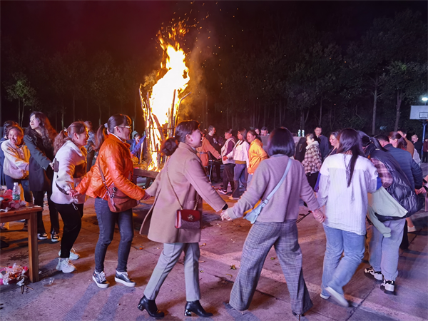 吃过饺子后,龙泉洞广场的篝火晚会拉开帷幕,院长在致辞中表达了对大家的祝福,伴着篝火的燃烧和动感的音乐,大家一起跳舞、烧烤、畅谈人生。借这样独特的方式,促进了女职工之间沟通交流,并为广大女职工送上三八节的祝福。