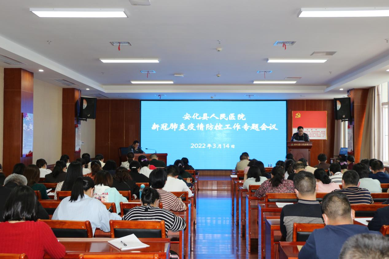 3月14日下午,县人民医院召开疫情防控工作会议。该院领导、各科室主任及护士长共100余人参会。