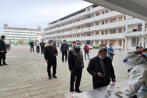 4月15日上午8点30分,江南镇卫生院医务人员刚走进江南镇完全小学门口,就听到学生们兴奋地叫到“大白又来了”“大白又来了”,完全没有了上次采样时的紧张。