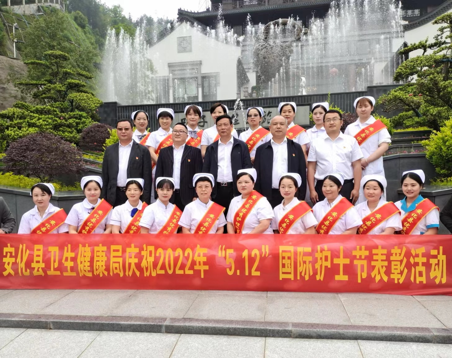 5月12日是第111个国际护士节,安化县卫健系统开展形式多样的活动为白衣天使们过节。 我局举办“关爱护士队伍,护佑人民健康”主题活动,庆祝5.12国际护士节表彰大会,表彰我县先进护理院感工作者。 县人民医院举行“关爱护士队伍 护佑人民健康”主题的庆祝5·12国际护士节表彰大会,表彰市级、县级、院级“优秀护士”72名、“优质护理服务之星”10名、“优秀护理管理者”6名、“优胜护理单位”6个。 县中医医院举行首届中医药健康科普竞赛暨优秀护士表彰大会,推动中医药文化传播,表彰优秀护理工作者。 县第二人民医院以“五个一”系列活动庆祝护士节,即一场联谊、一次志愿服务、一份温暖慰问、一个减压行动、一次专业鼓励。让护士们开心过节,舒缓压力,提升士气,充电续航。 小淹镇中心卫生院对该院6名优秀护士进行了表彰,同时以拔河赛的形式庆祝护士节。该院院委班子为优秀护士送上鲜花及荣誉证书,致以节日的问候,鼓励全院护士以她们为榜样,学习她们爱岗敬业、无私奉献的精神。