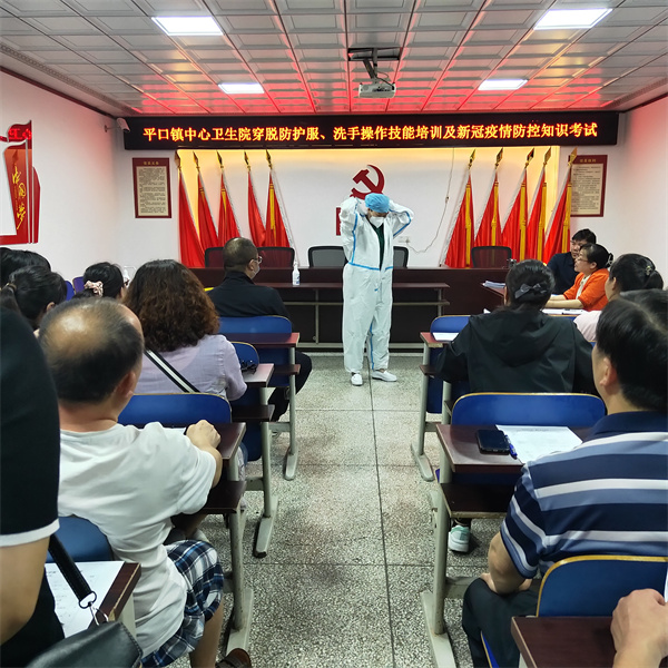 为进一步做好新冠肺炎疫情防控工作,提高医务人员的院感防控意识与应急能力水平,近日,卫健系统各单位纷纷组织开展新冠疫情防控知识培训与相关知识考核。 平口镇中心卫生院 6月13日至14日,平口镇中心卫生院组织全体干职工开展新冠疫情防控知识考试与“穿脱防护服”操作培训考核。