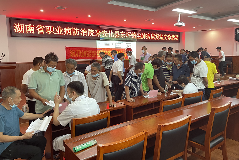 7月1日,湖南省职业病防治院专家组一行到我县开展农民工尘肺病义诊活动,活动在我县农民工尘肺病康复站试点单位东坪镇卫生院举行,共70余名尘肺病患者参加。