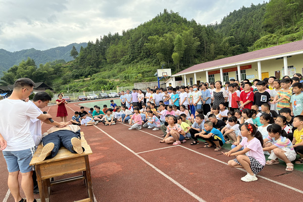 活动中,为学生们讲授防溺水安全知识教育课,组织学生唱响防溺水童谣,讲解溺水急救知识,让防溺水“六不要”深入人心。随后在操场为学生们进行防溺水心肺复苏急救演示,并由临床医师指导学生代表体验心肺复苏急救操作。
