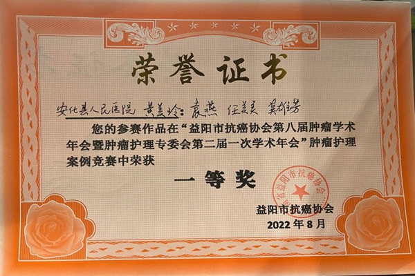 8.19日,益阳市抗癌协会“第八届肿瘤学术年会暨肿瘤护理专委会第二届一次学术年会”肿瘤护理案例竞赛召开,县人民医院肿瘤血液内科护理团队分享的《一例胰腺神经内分泌瘤终末期患者的安宁疗护实践》在竞赛中脱颖而出,荣获第一名。