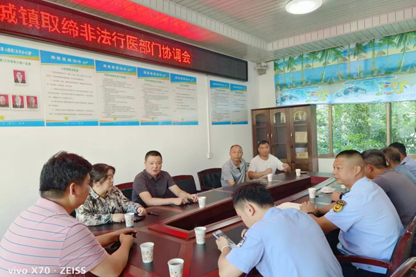 行动开始前,县卫生健康局联合梅城镇人民政府、县市监局、县公安局在行动前组织该诊所所在望城村负责人进行了协调沟通,就该口腔诊所非法行医案件调查、广告牌撤除、器械没收等工作进行讨论与分工,进一步完善行动方案。行动开始,该村村支书、梅城镇综合执法大队先行协调诊所负责人,行动组顺利进入经营场地开展调查取证、收集证据材料,最后,依法对非法行医诊所进行取缔,没收药品、器械两箱,牙椅两张,业主承诺将自行撤除所做的三处广告牌。