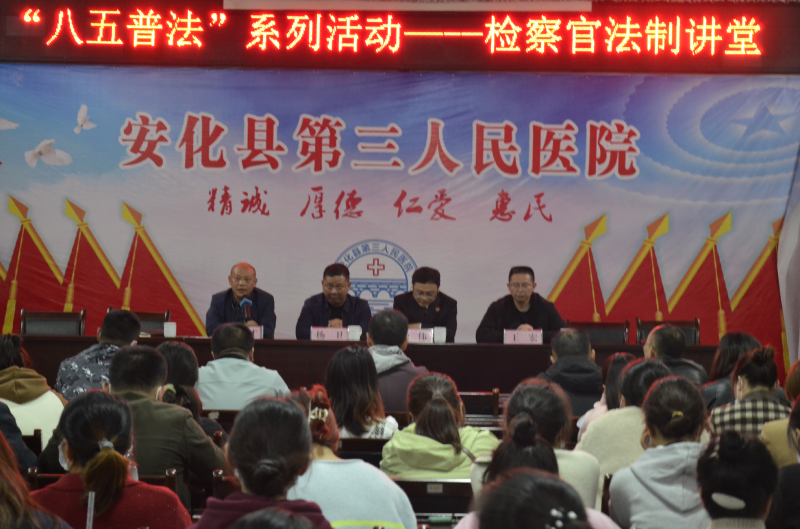 为进一步推进法律宣传,增强医务人员法律意识,11月3日,县第三人民医院开展了以“公职人员刑事法律风险与防控”为主题的法制讲座,安化县人民检察院检委会委员、第二检察部员额检察官钟伟受邀授课,该院干职工200余人参加讲座。 本次普法活动主要涵盖刑事法律风险防范、刑法概念和公职人员常见刑事犯罪类型等内容,主讲人通过以案释法、结合案件办理实际,重点讲解危险驾驶罪、交通肇事罪、职务犯罪、涉毒犯罪等与工作生活实际联系最紧密且最容易触犯的违法犯罪行为,并对造成此类违法犯罪的原因及社会影响进行剖析,警醒医护人员防范法律风险。会后还向参会职工发放了禁毒、反诈等宣传资料,进一步巩固本次活动的成果。 医院负责人表示,此次普法活动是全面落实党中央“八五”普法规划的具体措施之一。全方位地给全院职工进行了相关法律知识的普及,进一步强化了医院干职工的法律意识。下一步,该院将始终坚持以医院管理和临床实际的普法需求为导向,通过多种形式进行普法宣传教育,努力为医院职工知法守法、懂法用法营造良好氛围。 |