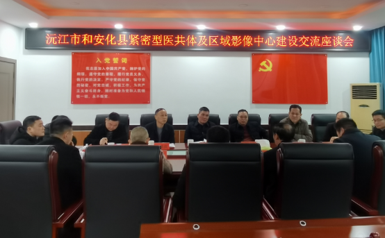2月23日,沅江市卫健局党组书记、局长易志斌带队一行10人来我县交流学习紧密型医共体及区域影像中心建设工作。县卫健局党组书记、局长李钦初及相关科室负责人参加。 在座谈会上,李钦初从“重根基,稳支撑,强联系,保质量,求实效”五个方面详细介绍了我县紧密型医共体及区域影像中心建设工作开展情况。易志斌表示,安化在紧密型医共体及区域影像中心建设方面的做法,十分值得借鉴和学习,同时就当前工作中遇到的新问题和新情况进行深入探讨。