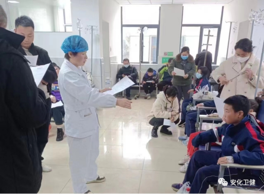 当日,门诊输液室留观及陪护多为学生及老人,针对人群特点,医务人员通俗易懂地介绍了什么是甲流,感染甲流的症状、传播途径、治疗措施,如何预防甲流,怎样区分甲流、普通感冒、新冠等,并为在场群众答疑解惑。