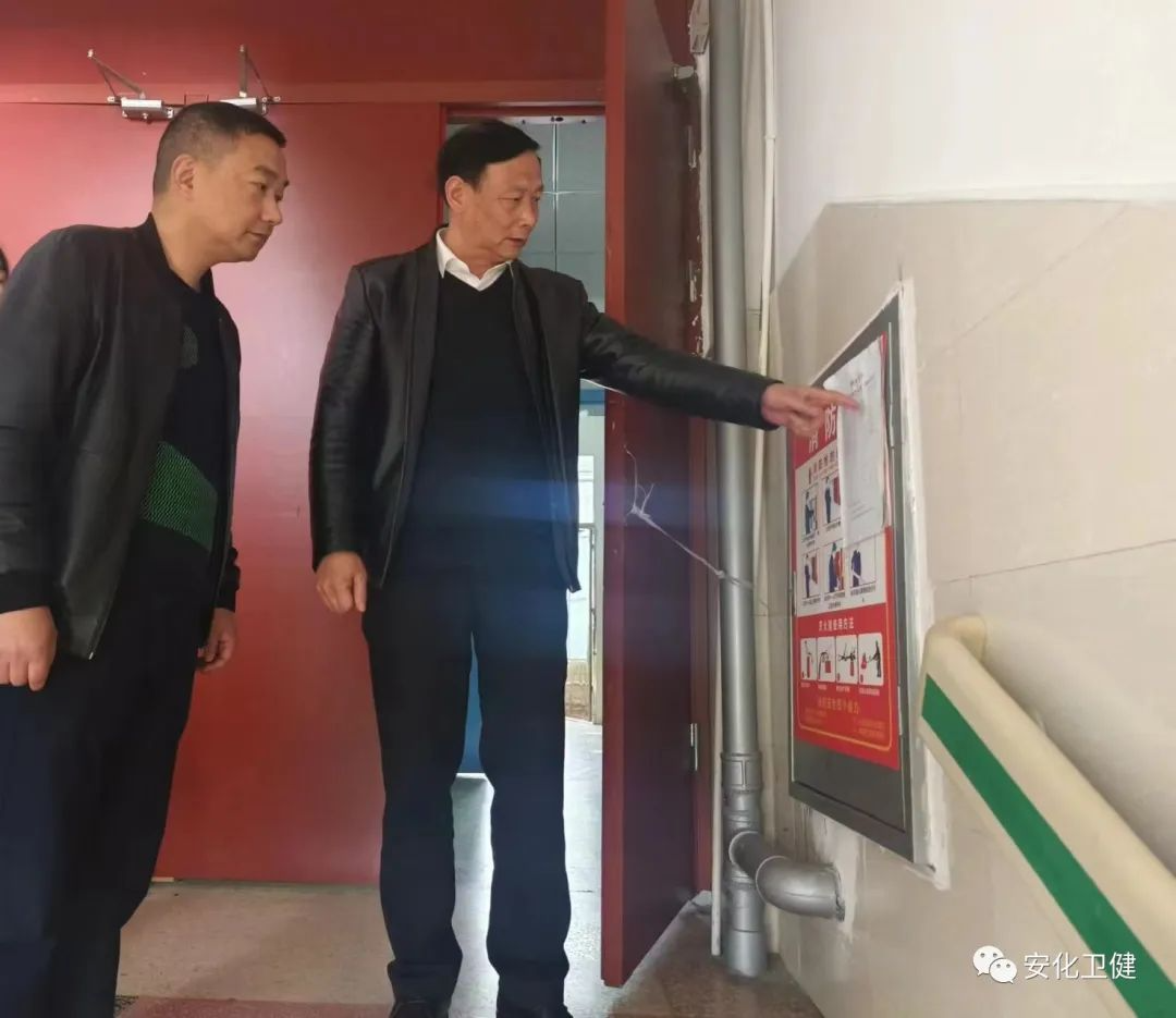 图为局党组书记、局长李钦初在奎溪镇卫生院督导安全生产工作 抓预防,提升安全能力水平。4月20日,邀请县消防救援大队宣讲员开展“预防为主 消防结合”专题授课,以案示警,以案促防,指导卫健系统落实消防安全标准化管理;4月19日以来,各医疗卫生单位通过应急演练进一步提高医务人员的消防安全意识和火灾预警处置能力,通过自查巡检,对医院消防安全形势进行专题研判分析,梳理医院消防安全存在的薄弱环节和突出问题,对医院各区域开展“地毯式”排查,压实安全责任,发现一处隐患,整改一处,确保问题隐患“销账清零”,截至4月25日,卫健系统各医疗卫生机构共开展自查与应急演练12次。