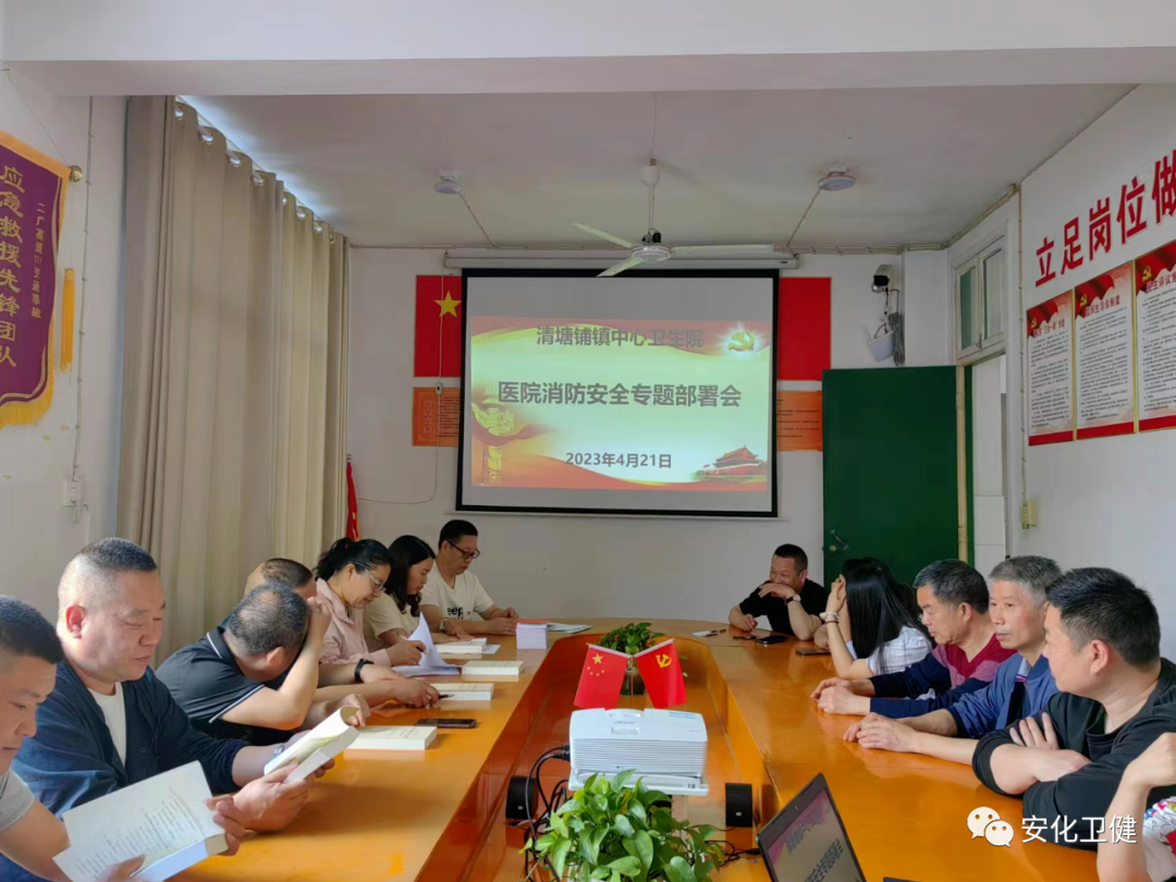 图为清塘铺镇中心卫生院召开消防安全专题部署会 重督导,保障安全工作实效。县卫健局与县消防救援大队开展联合专项督查,由局党组成员带队深入全县医疗卫生单位进行督导全覆盖,确保各单位安全生产工作责任到位,落实到位,取得实效,全力护航“五一”安全,筑牢卫建系统安全生产防线,已督导15家医疗卫生单位。